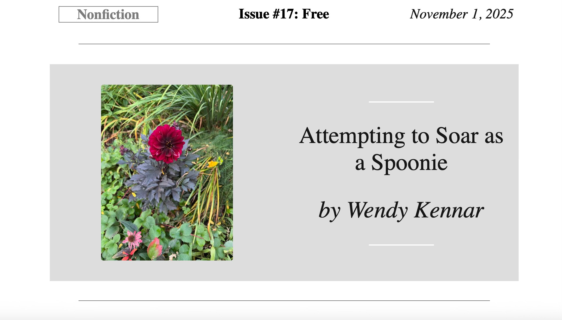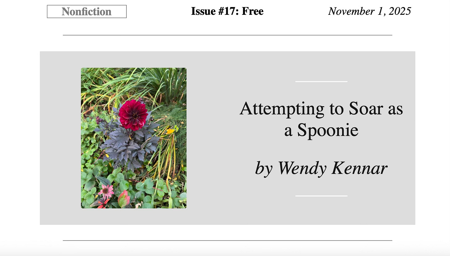 The paragraph above is an excerpt from my recently published personal essay, “Attempting to Soar as a Spoonie.”
